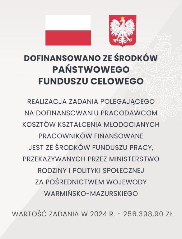Burmistrz Miasta Ostróda informuje, iż zgodnie z art. 122 ust. 1 ustawy z dnia 14 grudnia 2016 r. – Prawo oświatowe (tj. Dz. U. z 2024 r. poz. 737) pracodawcom, którzy zawarli z młodocianym pracownikiem umowę o pracę w celu przygotowania zawodowego, przysługuje dofinansowanie kosztów kształcenia, jeżeli: