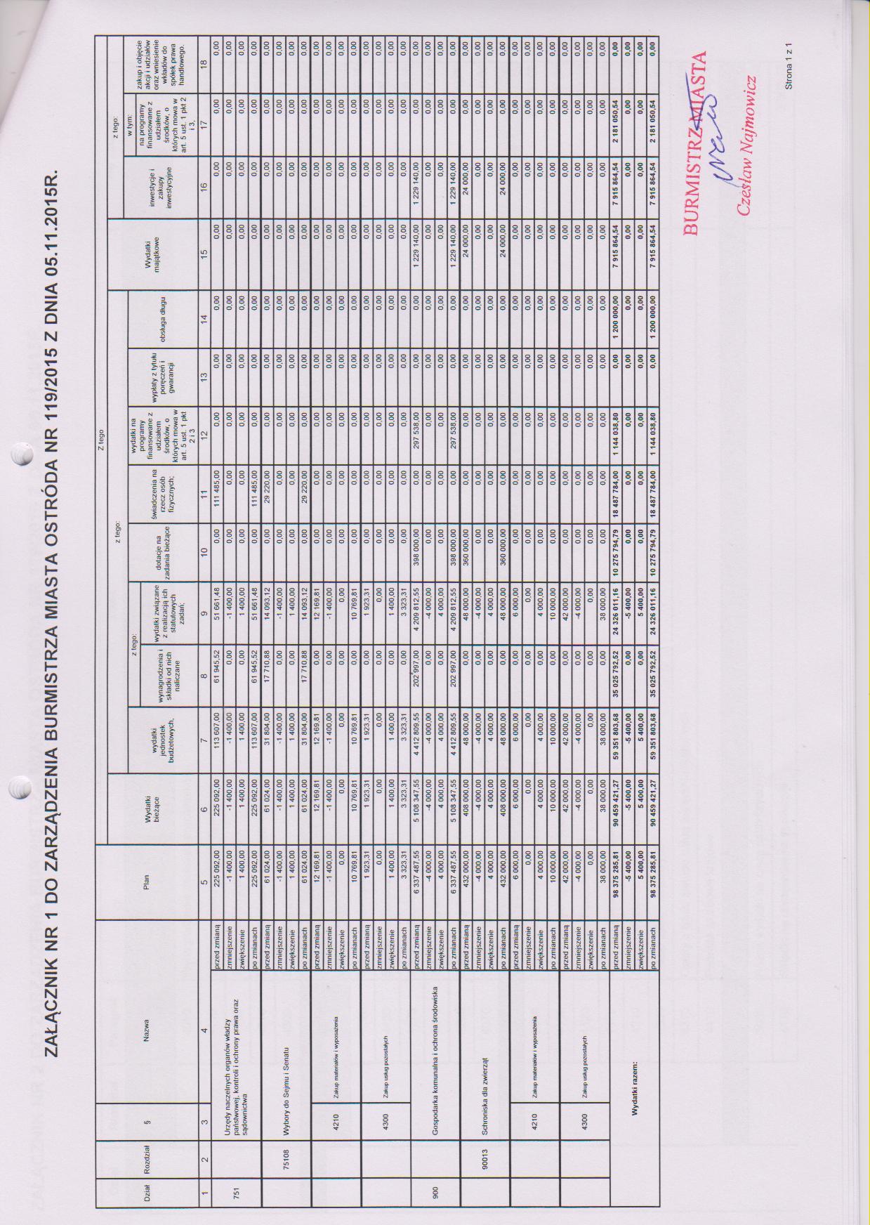 - Zarządzenie Nr 119/2015 Burmistrza Miasta Ostróda w sprawie zmian w budżecie miasta Ostróda na 2015 rok